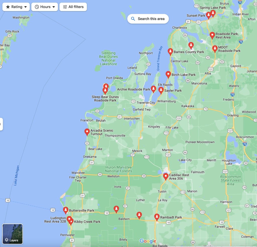 - Roadside Parks — A simple search on the map for Roadside Parks in Michigan, where I live, pulls up dozens, if not hundreds of locations that are easily accessible along many routes. Some of these parks are designed to be used as picnic areas or informal rest areas, which makes them easily accessible during most seasons.