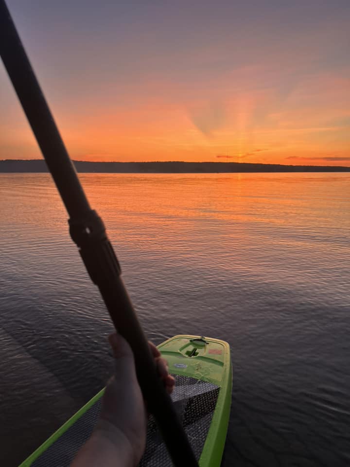 It was my first year of SUP paddle-boarding, too, and I’m hooked! I’ve now paddled two lakes and part of the gorgeous Big Sable River. Drawn to the water at every turn, it was also my first year of open water swimming. I spent the summer swimming to the center of two local lakes, and finally traversed an entire lake by the season’s end— using a buoy like the ones people use to train for marathons.