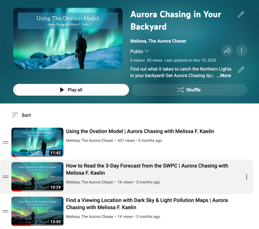 With growth being an ongoing theme, I noticed how quickly the Michigan Aurora Chasers Group was climbing toward 100,000 members. To help thousands of new members, I debated launching the educational and cultural podcast I’d been dreaming up. But visuals tell the story, so I launched my own YouTube channel instead!