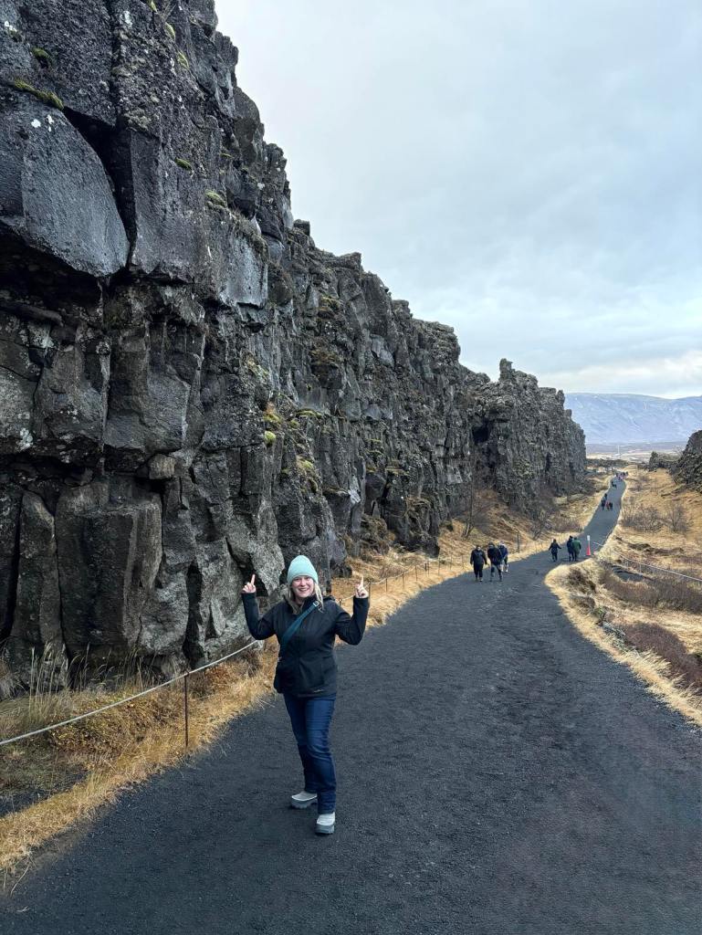 Pictured: Hiking along the continental divide at Þingvellir National Park in Selfoss, Iceland, November 2024.